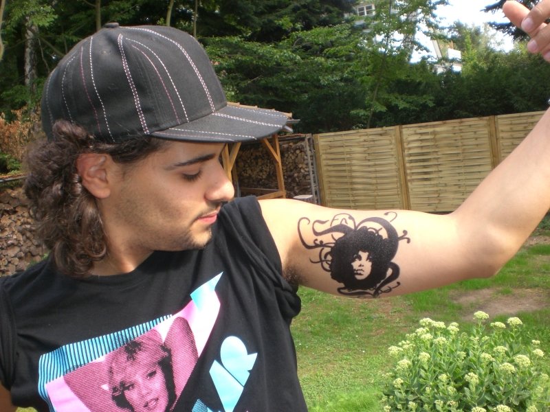 Wir zeichnen Tattoo-Entwürfe und malen nach Wunsch auch direkt auf den Körper. Dazu benutzen wir spezielle Designstifte, deren Farbenvielfalt es uns ermöglicht Farben und Schattierungen wie bei einem echten Tattoo aussehen zu lassen. Die Stifte sind hautverträglich (auf Alkoholbasis) und halten in der Regel 3 Tage (variierend je nach Hauttyp). Wir bemalen auch gerne für Partys, Halloween und Ähnliches.